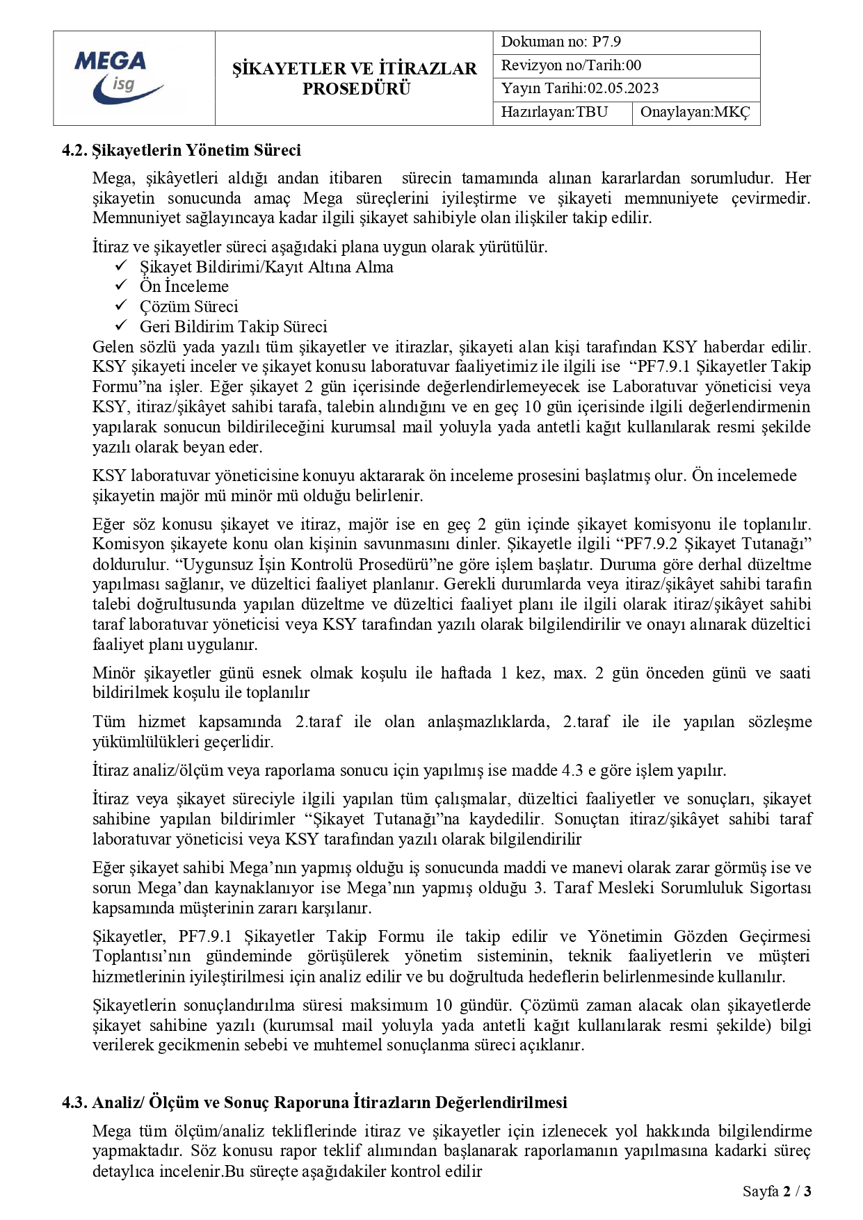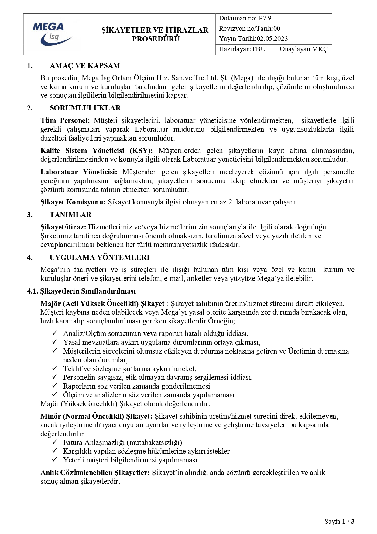 İTİRAZ VE ŞİKAYET PROSEDÜRÜMÜZ