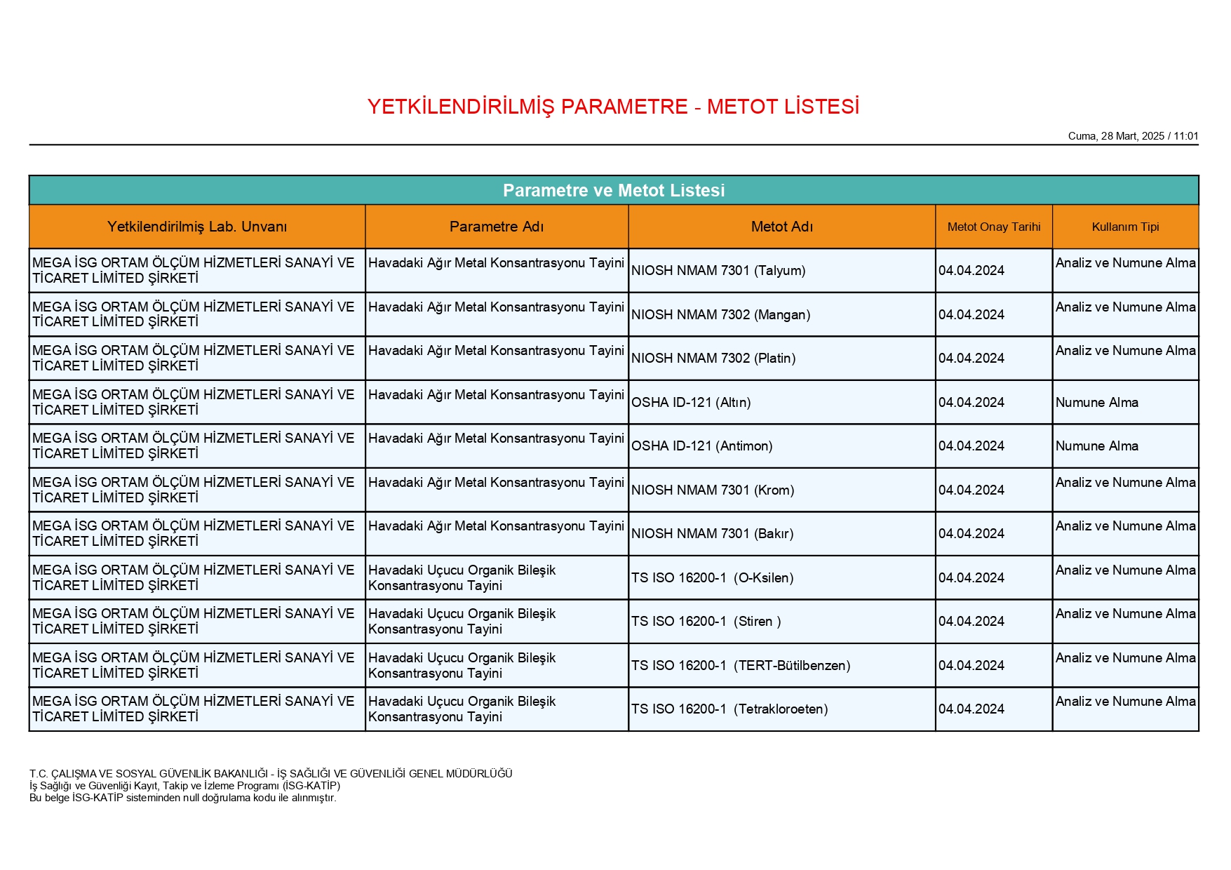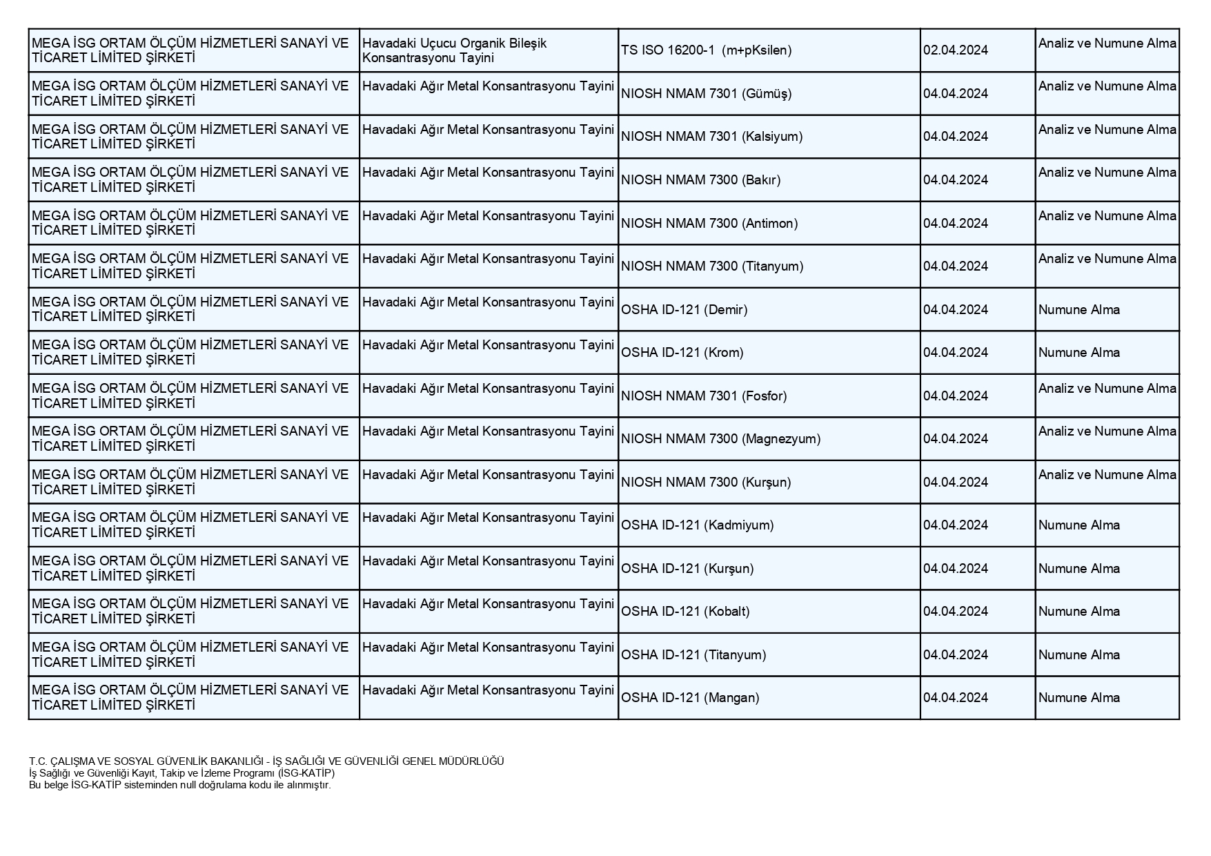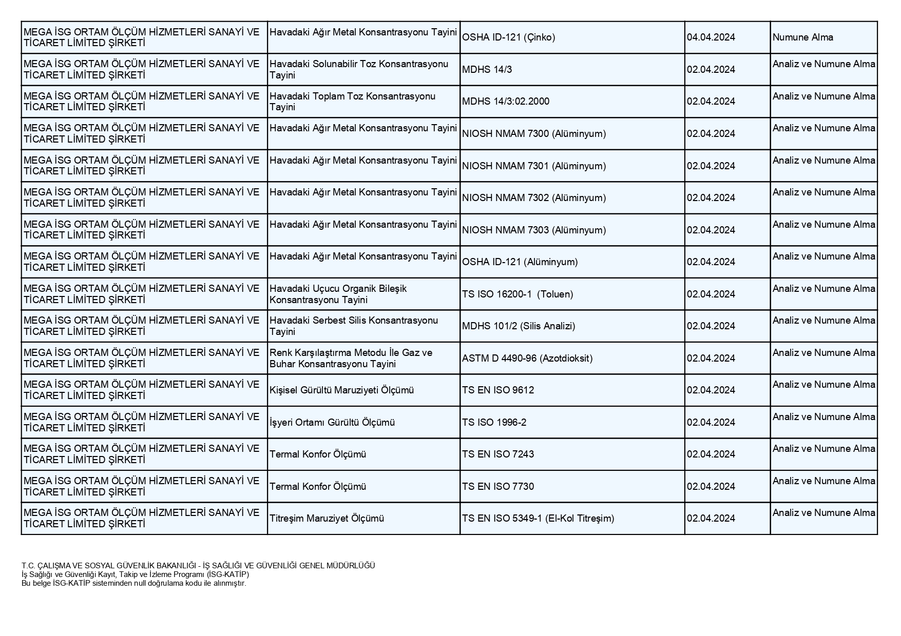 MEGA İSG olarak;